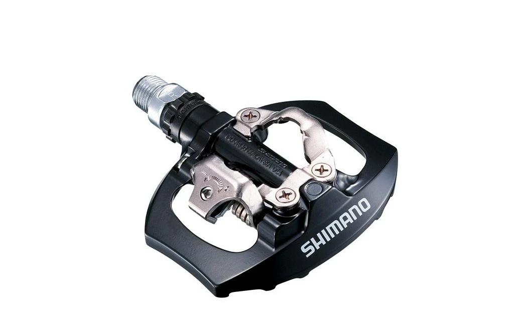Les pédales Shimano PD-A530 sont des pédales idéales pour une pratique cyclotourisme. Elles offrent un côté automatique qui fonctionne avec une cale au standard SPD. La tension des ressorts est réglable afin d’adapter la dureté d’enclenchement des cales SPD à sa guise. La plateforme en aluminium permet d’utiliser les pédales en mode « plates » avec des chaussures de sport classiques.